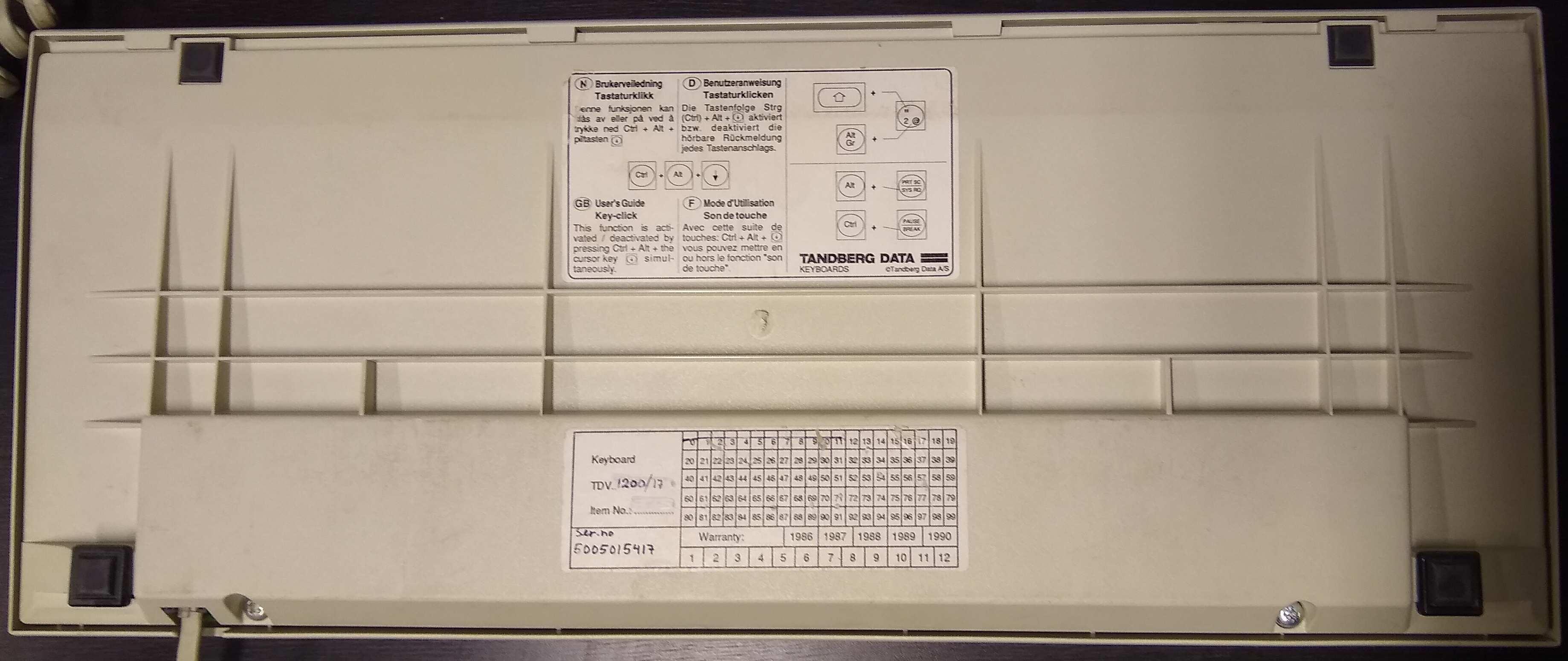 Tandberg TDV 1200 keyboard underside.